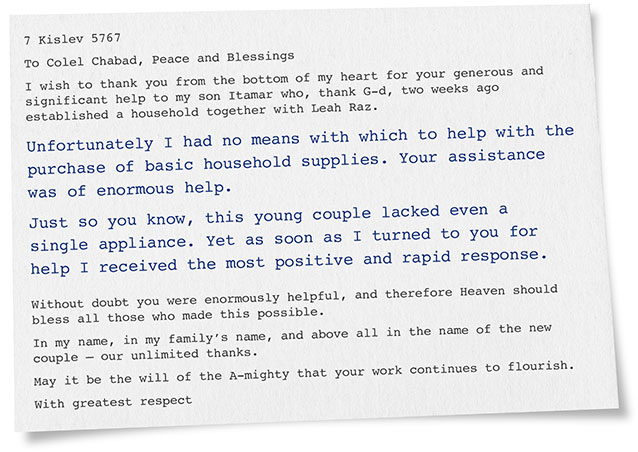 We are blessed to be helping so many families develop a strategy of confidence leading to a lifetime of independence. Colel Chabad is grateful to have this opportunity, and thankful to our partners – people like you – who enable us change so many lives every day.